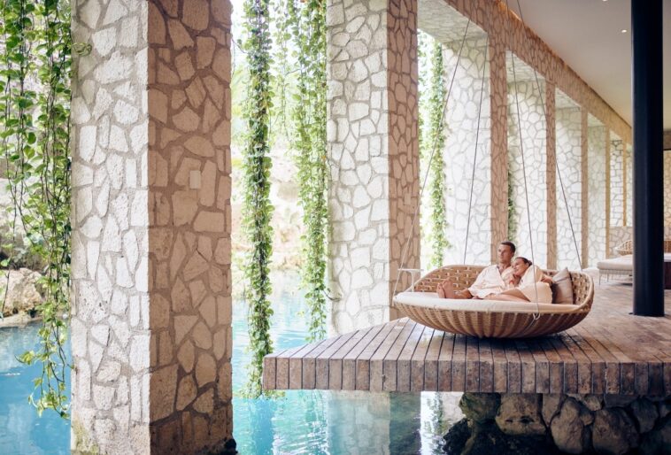 Desde que bajas por los pasillos de roca del hotel, la atmósfera cambia. Todo se vuelve más silencioso y el aire se siente distinto. Muluk Spa está diseñado para integrarse con la selva y con las formaciones naturales que lo rodean, tanto que por momentos parece que entras a una caverna tallada por agua en lugar de un spa de lujo. Hotel Xcaret México ha explotado bien este concepto, evitando adornos exagerados y apostando por texturas minerales, luz tenue y espacios que invitan a bajar revoluciones desde el primer paso.